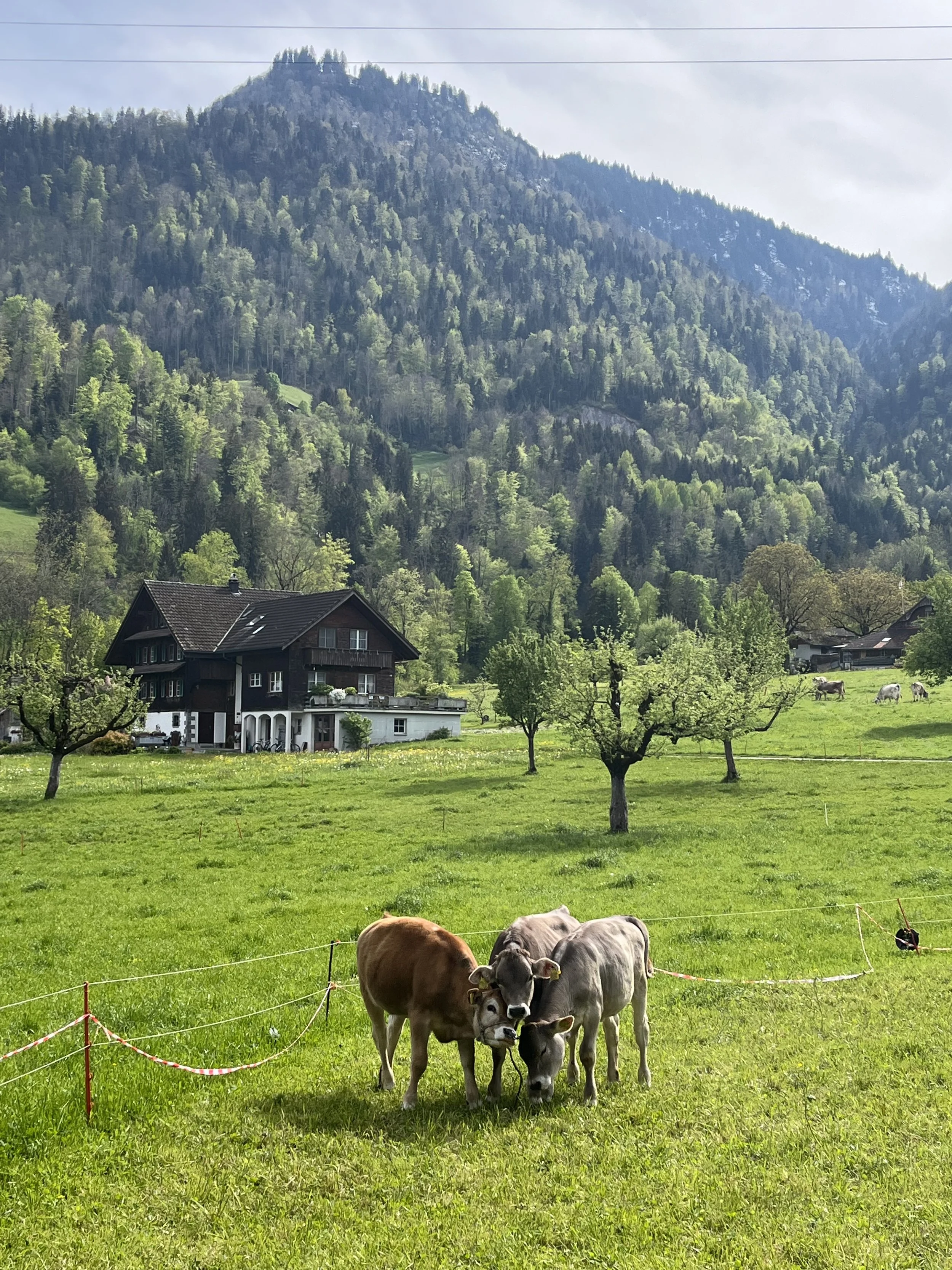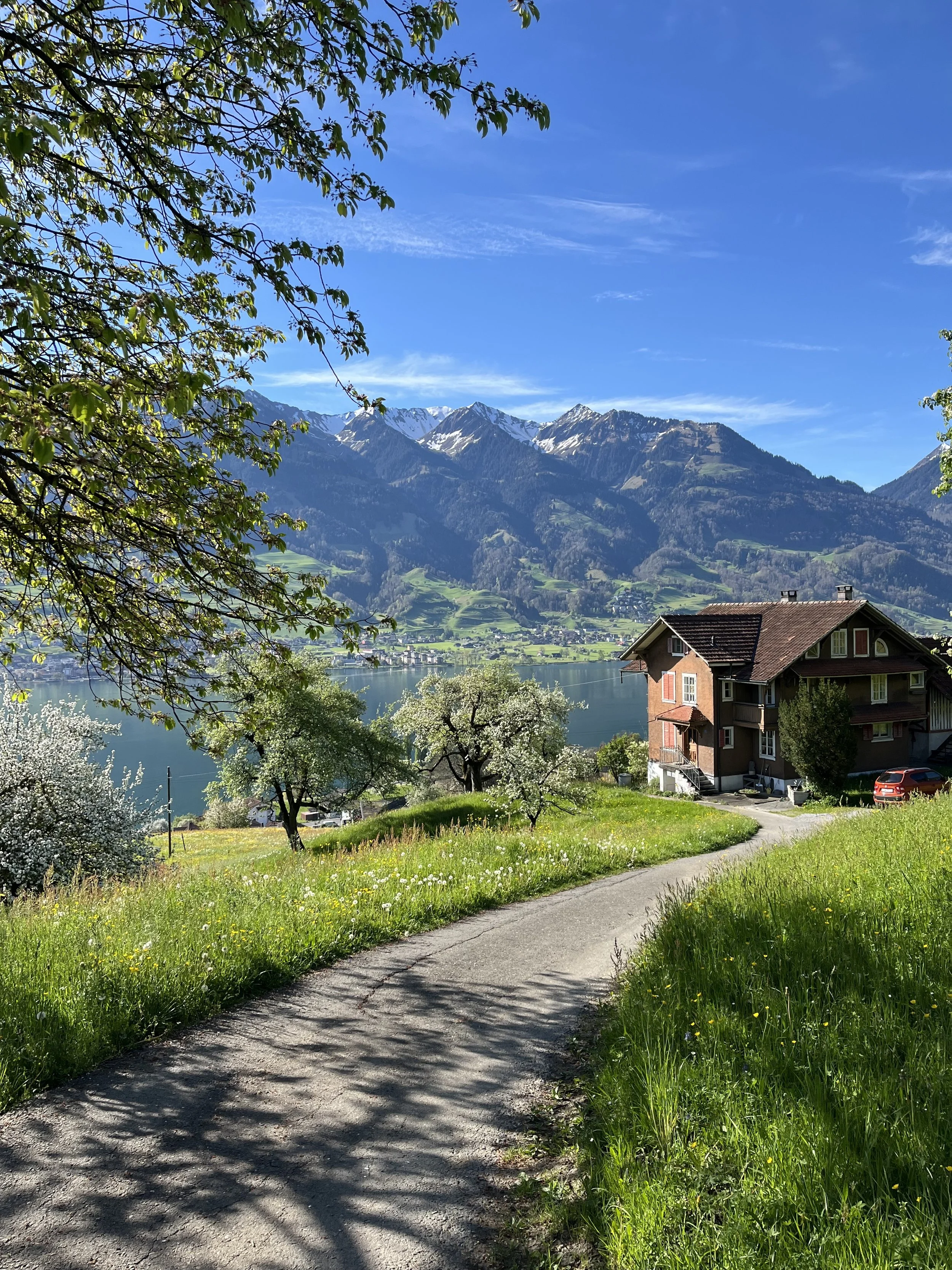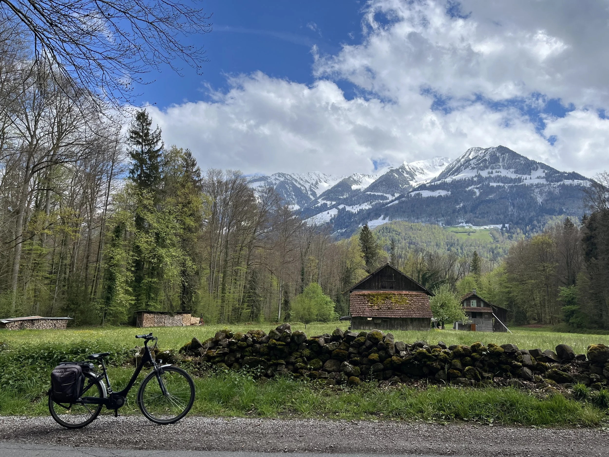 The Berwert family, serious outdoor enthusiasts, had a garage brimming with e-bikes, skis, snowboards, sleds, fishing poles, tents, and hiking sticks. Andrea kindly lent me her beloved e-bike, “Roberta,” who became my chief exploration companion. Together, we roamed over hills, through valleys, and around the lake.